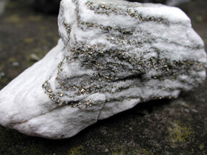 Bild: Zuckerkörniger Dolomit mit Pyritadern (Foto F. Schenker)